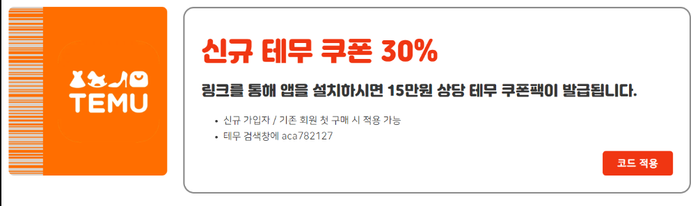 또한, 테무 쿠폰을 다운로드 하시려면 아래서 확인하시면 되겠습니다. 여기서는 30%, 13만 원 할인 쿠폰 등 지금이 가장 좋은 혜택으로 나온 쿠폰들을 확인하실 수 있고, 장점과 단점에 대해 알아보실 수 있습니다.